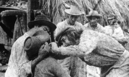 Ο θυμός του αποτυπώνεται πειστικά στην ταινία «Ημερολόγια Μοτοσυκλέτας», όταν εγκαταλείπει το πάρτι γενεθλίων που του είχαν διοργανώσει στην όχθη των «υγειών» και πηγαίνει κολυμπώντας στην απέναντι πλευρά κατά τη διάρκεια της νύχτας. Στο ημερολόγιο ο Τσε έγραψε ότι όντως κολύμπησε προς την απέναντι όχθη, αλλά δύο μέρες μετά το πάρτι και υπό το φως της ημέρας. Η απόσταση που κολύμπησε ήταν περίπου τρία μίλια, την οποία δύσκολα καλύπτει κάποιος που υποφέρει από άσθμα όπως ο Τσε. Η κίνησή του όμως ήταν συμβολική γι’ αυτό δεν το έβαλε κάτω και έφτασε στην όχθη των «ασθενών». Οι δύο όχθες του ποταμού για το Τσε απόκτησαν συμβολικό νόημα. Αντικατόπτριζαν την αδικία του κόσμου, όπου στη μία άκρη βρίσκονται οι δυνατοί και οι πλούσιοι και στην άλλη οι αδύναμοι και φτωχοί. Η επαφή με τους λεπρούς ήταν για τον ιδεαλιστή Γκεβάρα μια «ζύμωση» των ήδη ανατρεπτικών ιδεών του, που αργότερα έγιναν πράξη Πηγή Tromaktiko