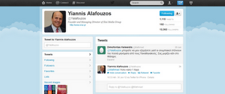 Την... καθιερωμένη του συνήθεια με τους οπαδούς του ΠΑΟ μέσω του Twitter είχε και σήμερα (30/06) το πρωί ο Γιάννης Αλαφούζος και για άλλη μια φορά ήταν προκλητικός με τις απαντήσεις του... σε οπαδούς των "πράσινων" και μη Διαβάστε αναλυτικά τη... συζήτηση του εμπνευστή της «Παναθηναϊκής Συμμαχίας 2012» με τους followers του: