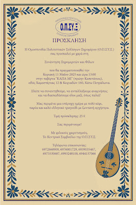 Ομοσπονδία Πολιτιστικών Συλλόγων Ξηρομέρου (ΟΠΣΥΞ) , συνάντηση Ξηρομεριτών και φίλων την Κυριακή 11 Μαϊου 2025 , ώρα 13:00