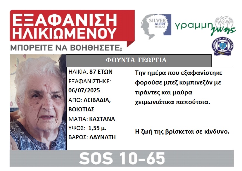 Εάν γνωρίζετε κάτι επικοινωνήστε με την υπηρεσία Silver Alert, όλο το 24ωρο, στην Εθνική Γραμμή SOS 1065.