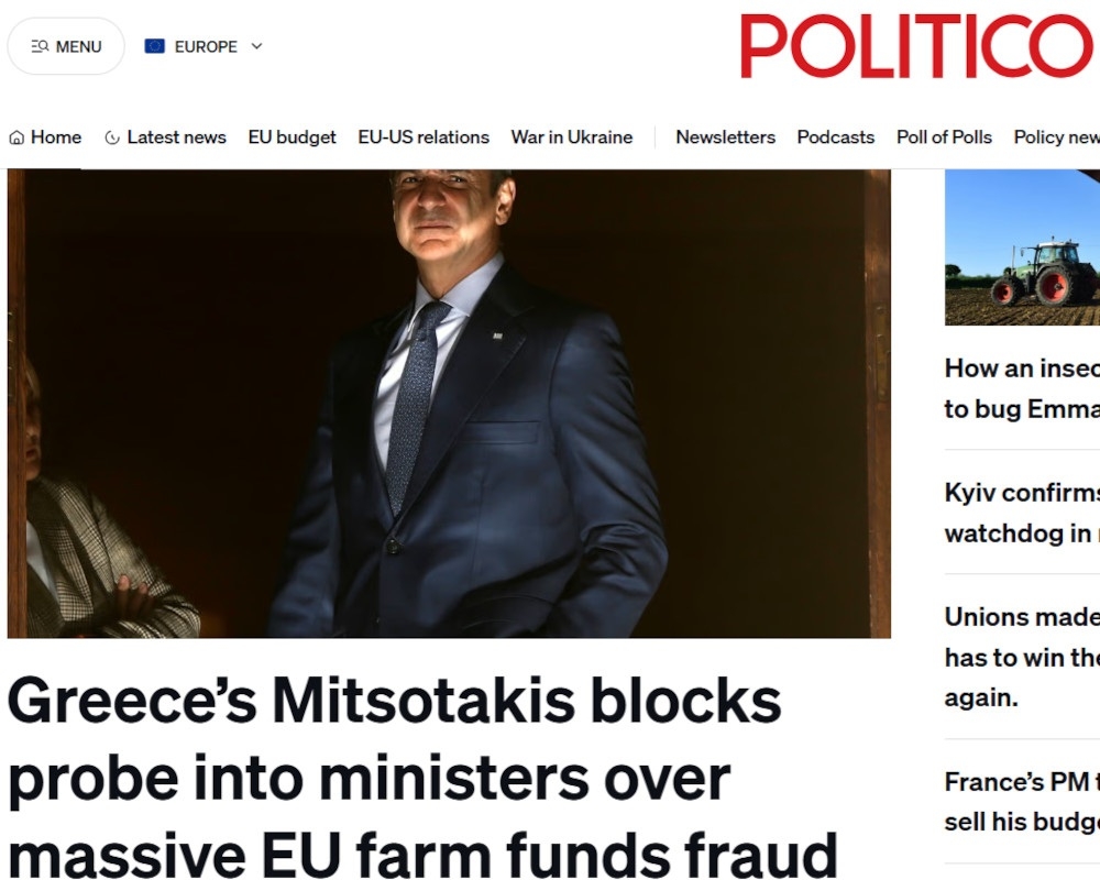 Με εκτενές αφιέρωμα του το Politico αναφέρει ότι ο Έλληνας πρωθυπουργός Κυριάκος Μητσοτάκης χρησιμοποιεί την κοινοβουλευτική του πλειοψηφία για να αποτρέψει μια πλήρους κλίμακας έρευνα σε βάρος υπουργών που κατηγορούνται για διαπλοκή στο σκάνδαλο του ΟΠΕΚΕΠΕ.