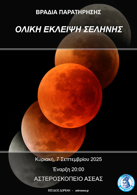 Αγαπητοί φίλοι, την επόμενη Κυριακή το βράδυ θα έχουμε τη τύχη να παρατηρήσουμε (καιρού επιτρέποντος) ένα σπουδαίο φυσικό φαινόμενο, ιδανικό για παιδιά αλλά και για μεγάλους: την ολική έκλειψη Σελήνης του 2025. Η ολική έκλειψη θα είναι ορατή από την Αρκαδία και όλο το φαινόμενο θα διαρκέσει από την ανατολή της Σελήνης λίγο πριν τις 20.00 και ως σχεδόν τα μεσάνυχτα με χρονικό παράθυρο ολικότητας από τις 20.30 - 21.52. Τους καλοκαιιρνούς μήνες η Σελήνη είναι χαμηλά στον ορίζοντα και οι εκλείψεις της είναι χρωματισμένες με πορτοκαλί-κόκκινο χρώμα που τις καθιστά ιδανικές για φωτογραφία τοπίου.