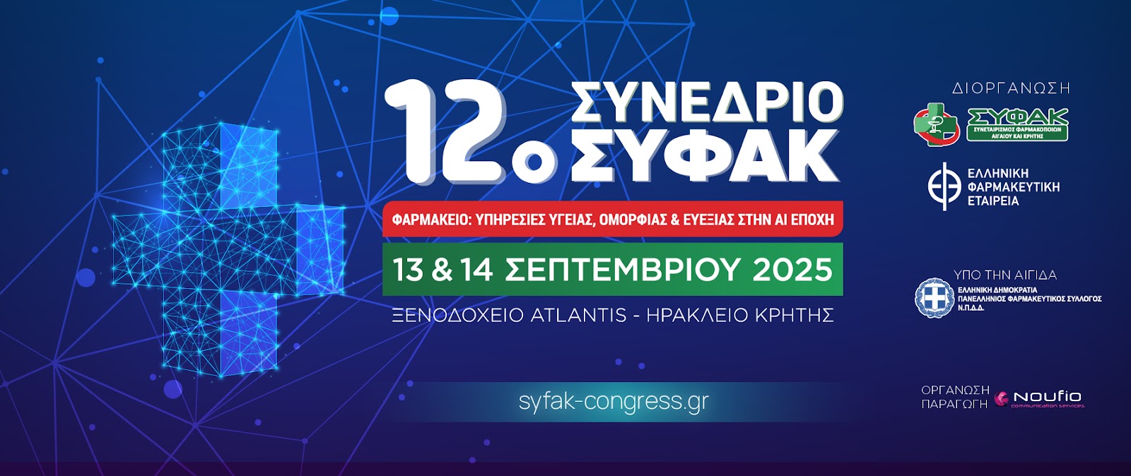 Οκτώ στρογγυλά τραπέζια και 4 ομιλίες επιστημονικού ενδιαφέροντος θα λάβουν χώρα στο πλαίσιο του 12ου Συνεδρίου του ΣΥΦΑΚ «Φαρμακείο: Υπηρεσίες Υγείας, Ομορφιάς & Ευεξίας στην ΑΙ Εποχή», που θα πραγματοποιηθεί στις 13 και 14 Σεπτεμβρίου 2025,στο ξενοδοχείο Atlantis, στο Ηράκλειο της Κρήτης.