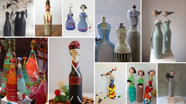 Με καλούπι ένα πλαστικό μπουκάλι οποιουδήποτε σχήματος και επίσης πολύ απλά υλικά όπως εφημερίδες, κόλλα χειροτεχνίας (ατλακόλ) και έτοιμο πηλό μπορείτε να φτιάξετε εξαιρετικής αισθητικής κούκλες-φιγούρες, που στο τελικό τους στάδιο μπορούν να διακοσμηθούν-ζωγραφιστούν με όποιο τρόπο θέλετε και επιτρέπουν οι ...καλλιτεχνικές σας δυνατότητες. :)