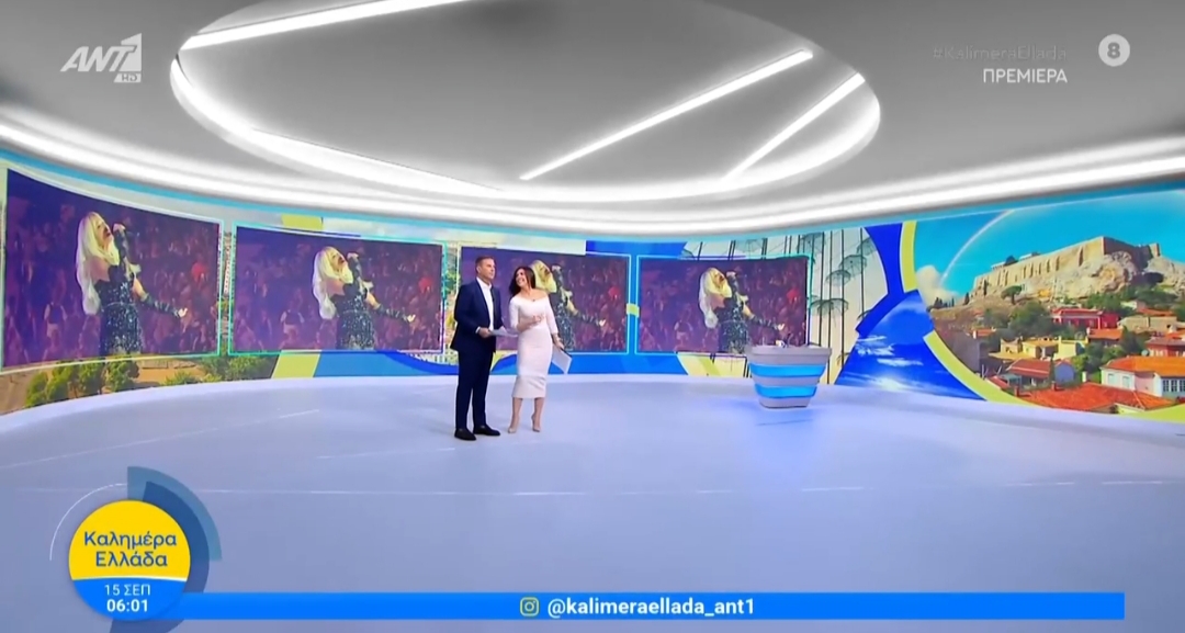 “Καλημέρα σας, καλωσήρθατε στη νέα σελίδα του “Καλημέρα Ελλάδα” εδώ στον ΑΝΤ1. Με ανυπομονησία και μεγάλη χαρά ερχόμαστε” πρόσθεσε, εν συνεχεία, ο δημοσιογράφος με την νέα τηλεοπτική του παρτενέρ να υπογραμμίζει τα εξής. “Να είστε καλά. Σας ευχαριστούμε πάρα πολύ που είστε εδώ μαζί μας αυτό το πρωινό. Θα είμαστε μαζί σας καθημερινά από Δευτέρα μέχρι και Παρασκευή, 06.00 με 09.00 το πρωί, γιατί στόχος αυτής της εκπομπής, όλης της ομάδας μπροστά και πίσω από τις κάμερες, είναι να ξεκινάει η μέρα μας, να είμαστε πάντα ενημερωμένοι αλλά με πολύ ωραία, θετική και χαρούμενη διάθεση”.