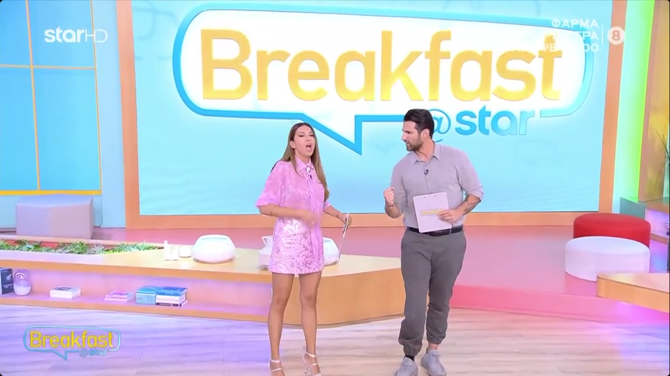 Με θετική αύρα, χαρούμενες διαθέσεις και το τραγούδι της Άννας Βίσση να δίνει τον ρυθμό, ξεκίνησε η 4η σεζόν του Breakfast@star. Η Ελένη Χατζίδου και ο Ετεοκλής Παύλου υποδέχτηκαν ξανά τους τηλεθεατές με ζεστασιά και ενθουσιασμό, δίνοντας το στίγμα μιας δυναμικής πρεμιέρας. Γεμάτο γέλιο, αμεσότητα και μικρές εκπλήξεις, το πρώτο επεισόδιο έδειξε ότι το πρωινό πρόγραμμα επιστρέφει πιο φρέσκο και ανανεωμένο από ποτέ.