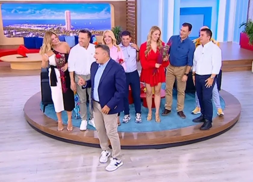 Ο παρουσιαστής δεν παρέλειψε να μοιράσει… αναμνηστικά στην πρεμιέρα: ένα τριαντάφυλλο σε κάθε γυναίκα της ομάδας και έναν στόχο με βελάκια στους άντρεςγια να κάνουν εύστοχα σχόλια, όπως ανέφερε.