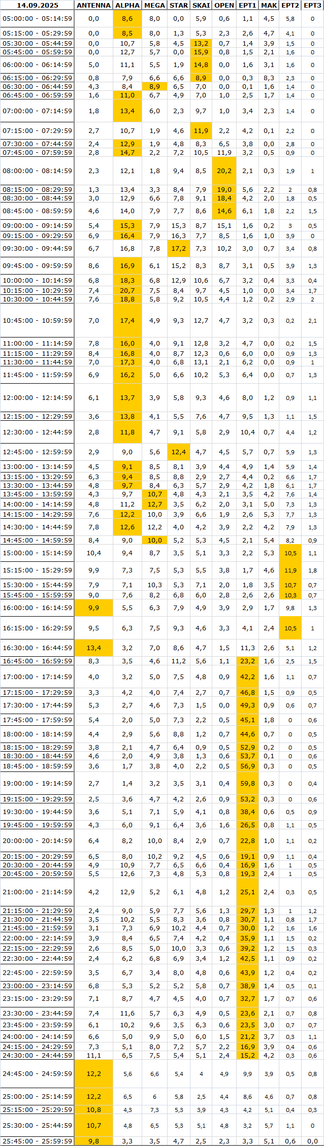 Δείτε αναλυτικά μέσα απο το TVNEA.COM τα 15' στο δυναμικό κοινό αλλα και το σύνολο ημέρα και prime time.