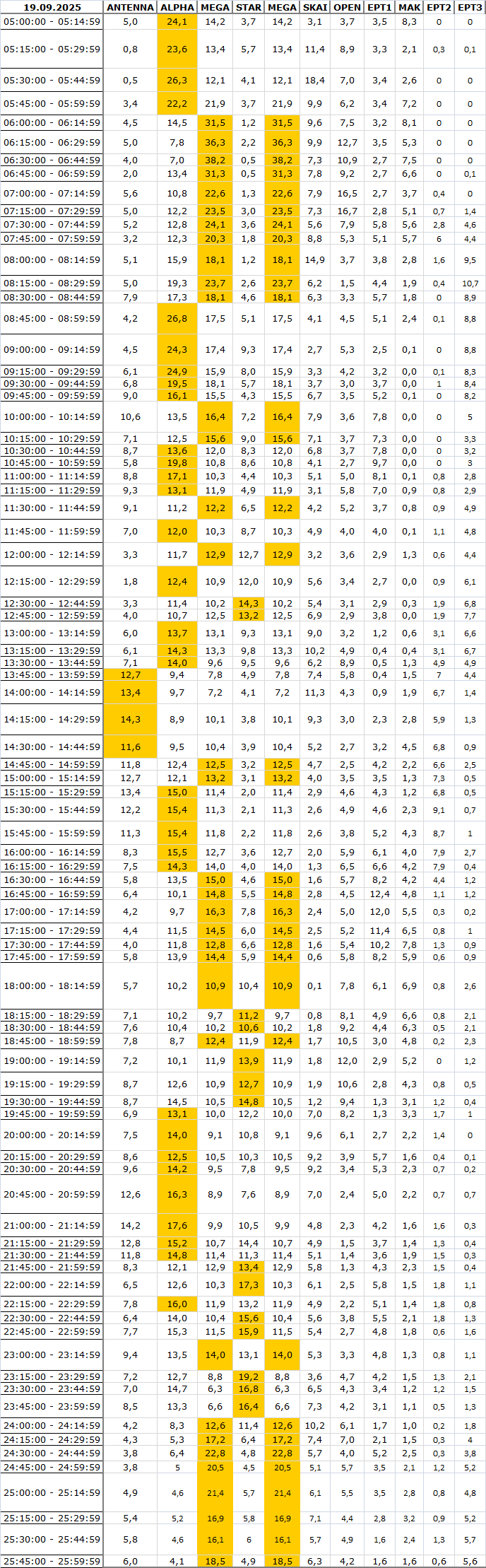 Δείτε αναλυτικά μέσα απο το TVNEA.COM τα 15' στο δυναμικό κοινό αλλα και το σύνολο ημέρα και prime time.