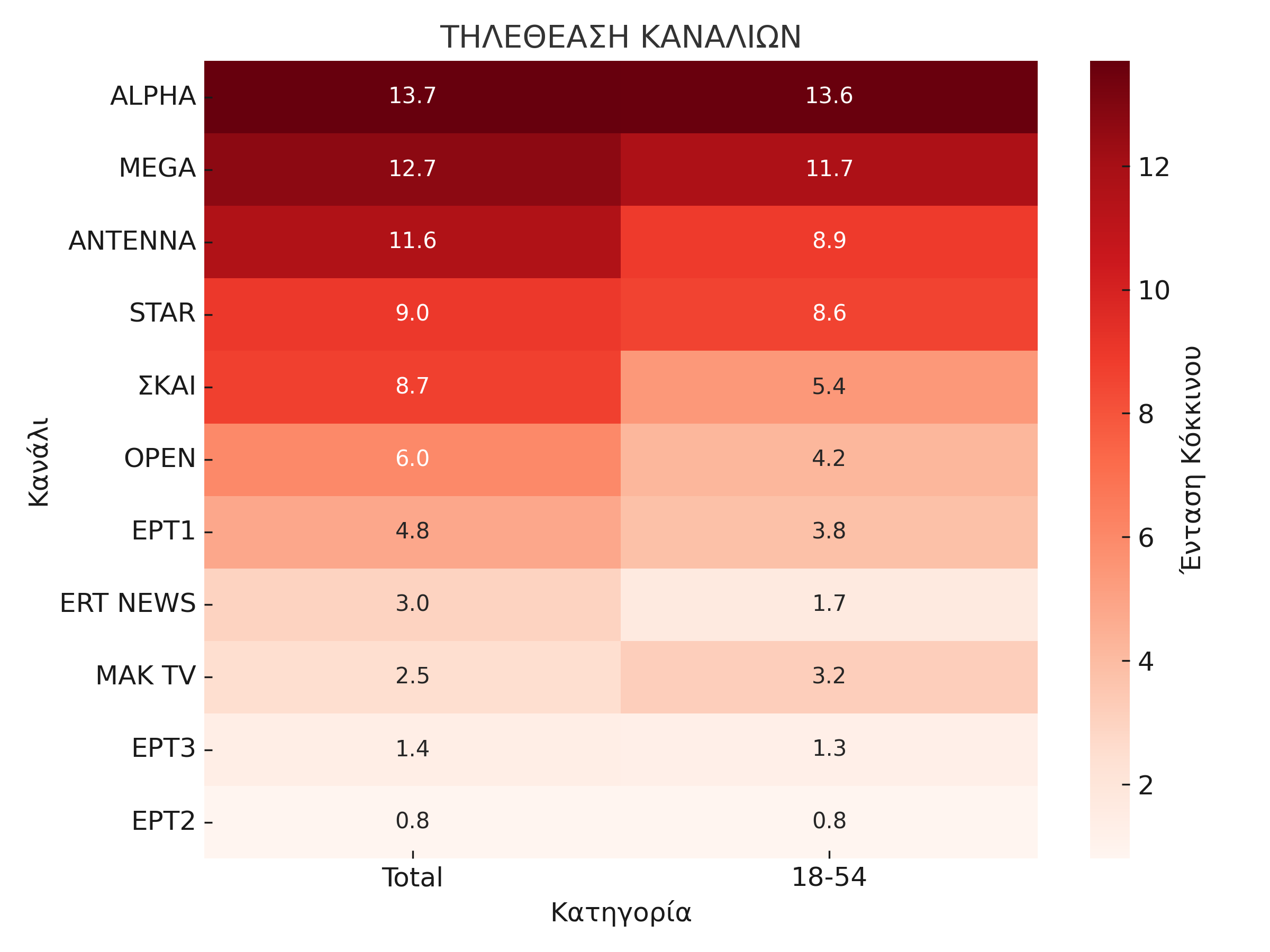 Στην αποτύπωση αυτή περιλαμβάνονται τα ποσοστά τόσο στο σύνολο κοινού, που καταγράφει τη γενική εικόνα της απήχησης, όσο και στο δυναμικό κοινό, το οποίο αποτελεί τον πιο εμπορικό δείκτη για τους σταθμούς και συγκεντρώνει ιδιαίτερο ενδιαφέρον.
