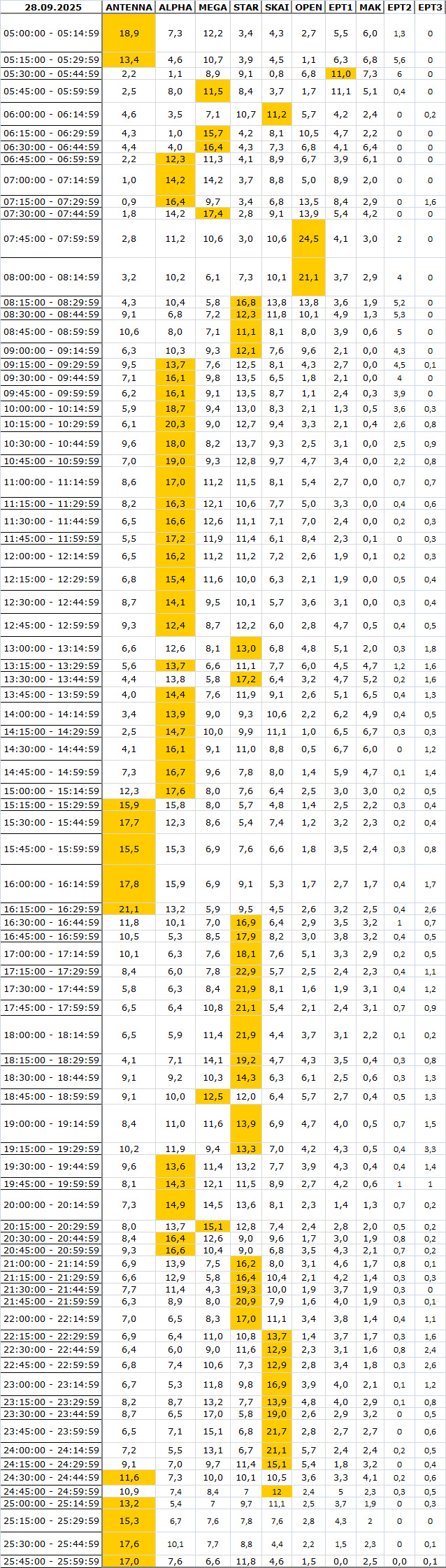 Δείτε αναλυτικά μέσα απο το TVNEA.COM τα 15' στο δυναμικό κοινό αλλα και το σύνολο ημέρα και prime time.