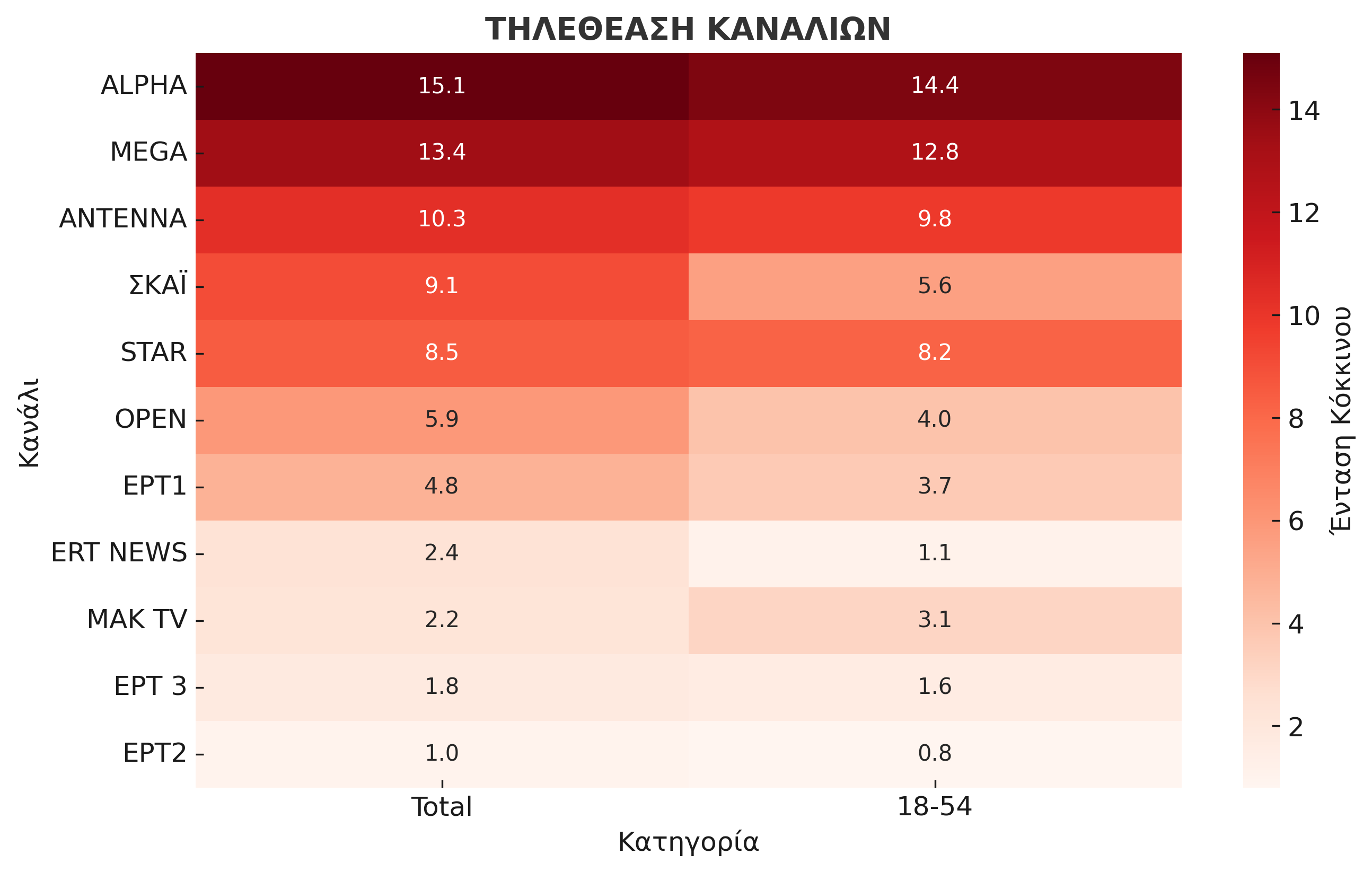Στην αποτύπωση αυτή περιλαμβάνονται τα ποσοστά τόσο στο σύνολο κοινού, που καταγράφει τη γενική εικόνα της απήχησης, όσο και στο δυναμικό κοινό, το οποίο αποτελεί τον πιο εμπορικό δείκτη για τους σταθμούς και συγκεντρώνει ιδιαίτερο ενδιαφέρον.