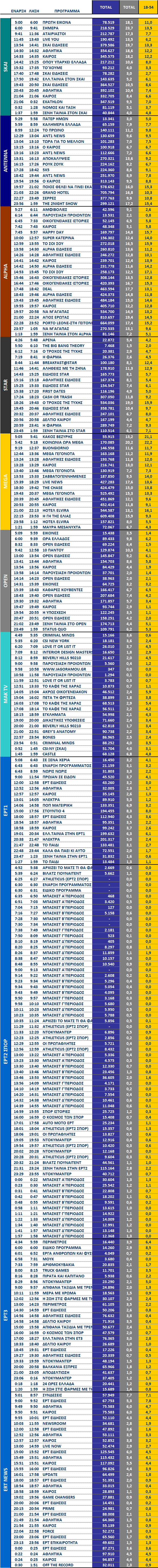 Δείτε αναλυτικά τα καθαρά νούμερα τηλεθέασης ανά ζώνη – πρωινή, μεσημεριανή, απογευματινή και βραδινή – και ποιοι βρέθηκαν στην κορυφή της νέας σεζόν.