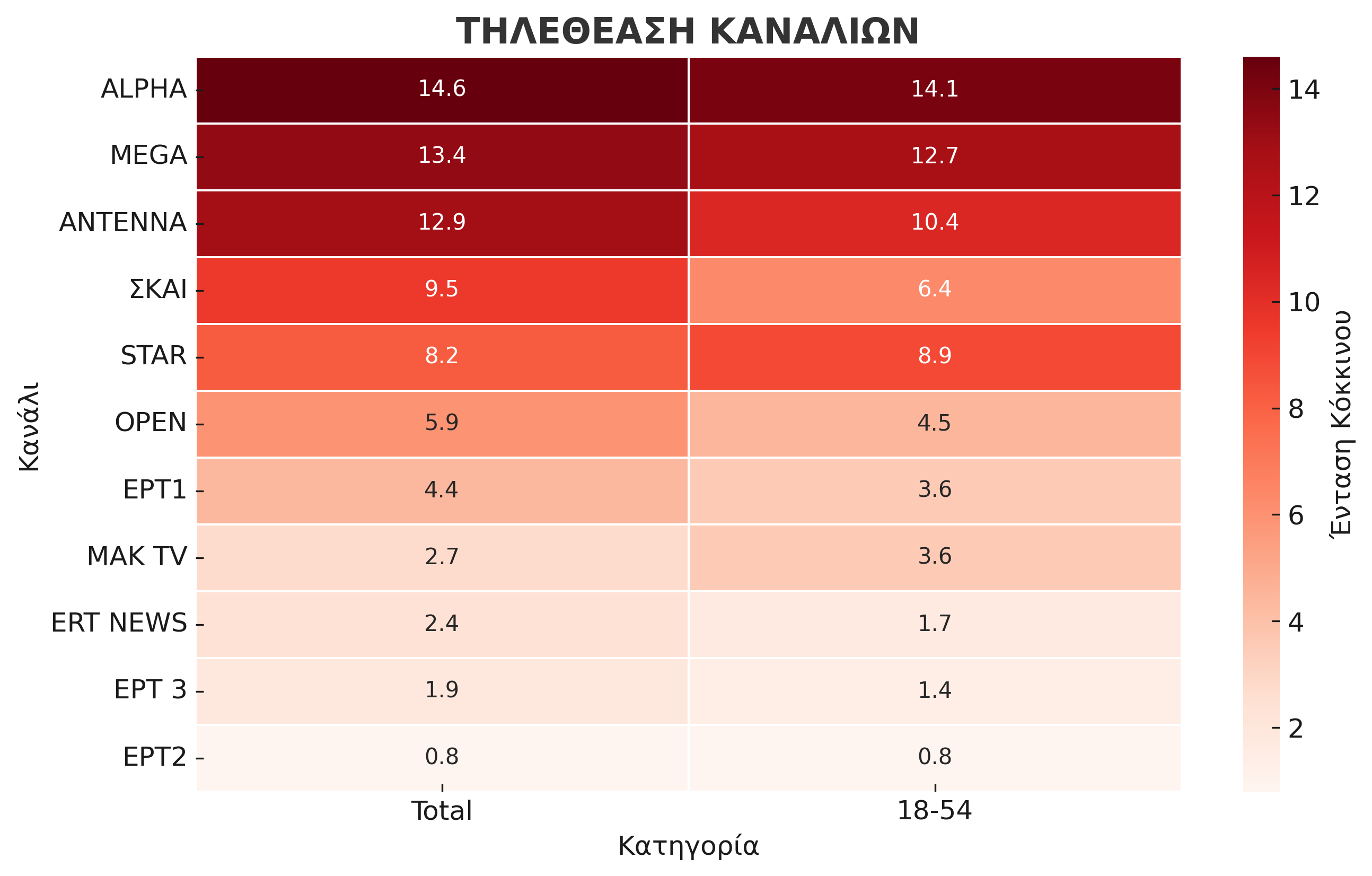 Στην αποτύπωση αυτή περιλαμβάνονται τα ποσοστά τόσο στο σύνολο κοινού, που καταγράφει τη γενική εικόνα της απήχησης, όσο και στο δυναμικό κοινό, το οποίο αποτελεί τον πιο εμπορικό δείκτη για τους σταθμούς και συγκεντρώνει ιδιαίτερο ενδιαφέρον.