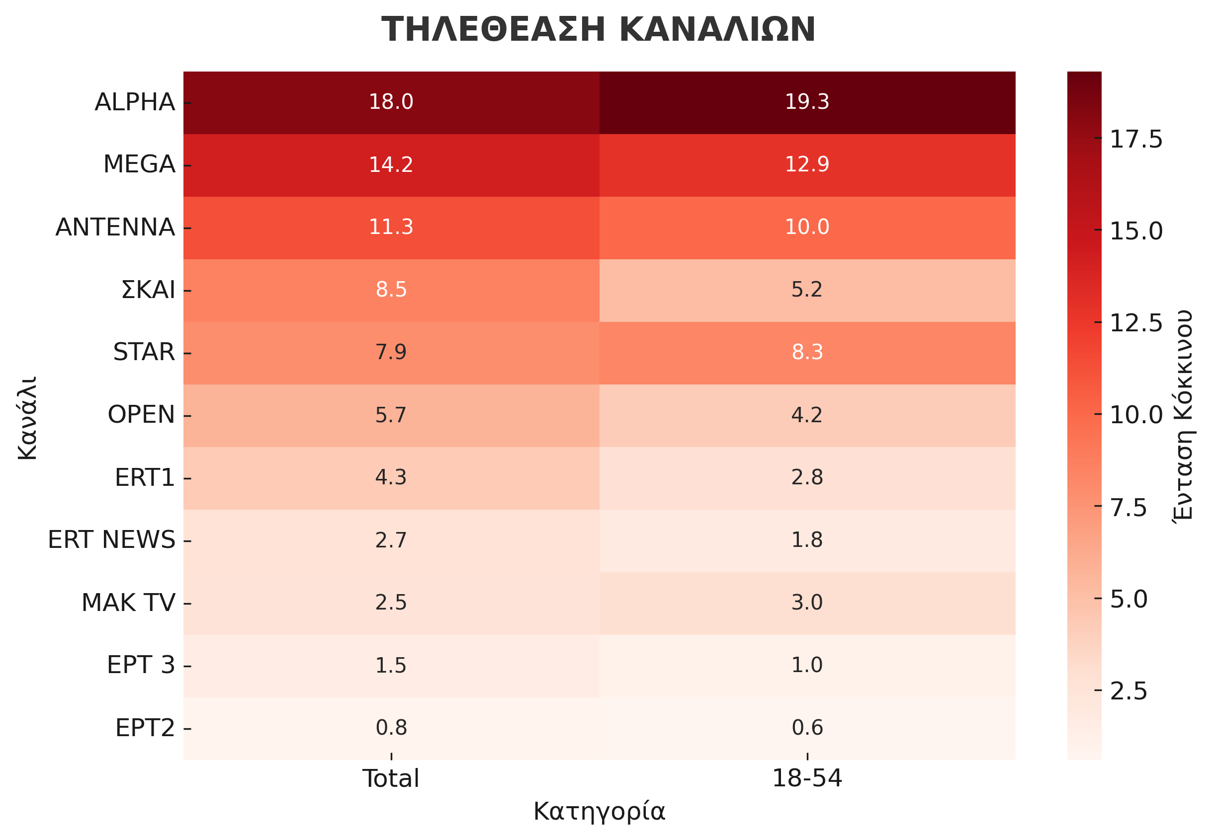 Στην αποτύπωση αυτή περιλαμβάνονται τα ποσοστά τόσο στο σύνολο κοινού, που καταγράφει τη γενική εικόνα της απήχησης, όσο και στο δυναμικό κοινό, το οποίο αποτελεί τον πιο εμπορικό δείκτη για τους σταθμούς και συγκεντρώνει ιδιαίτερο ενδιαφέρον.