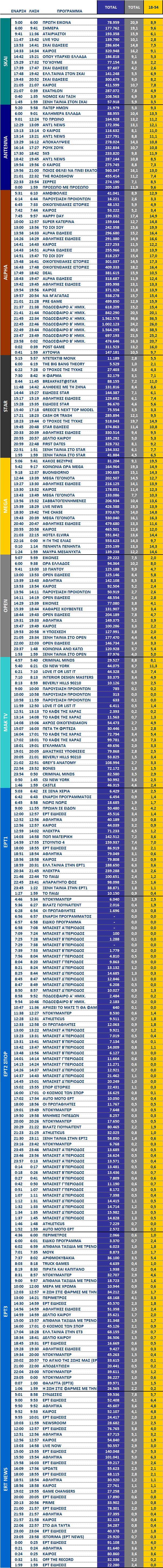 Δείτε την κατάταξη των καναλιών για την Πέμπτη 9/10/2025