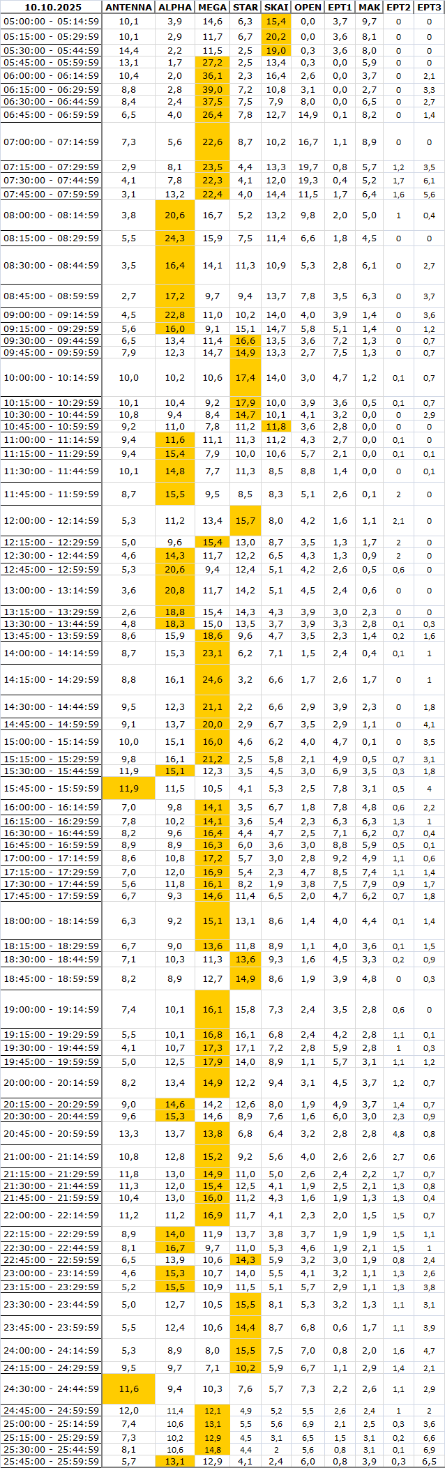 Δείτε αναλυτικά μέσα απο το TVNEA.COM τα 15' στο δυναμικό κοινό αλλα και το σύνολο ημέρα και prime time.