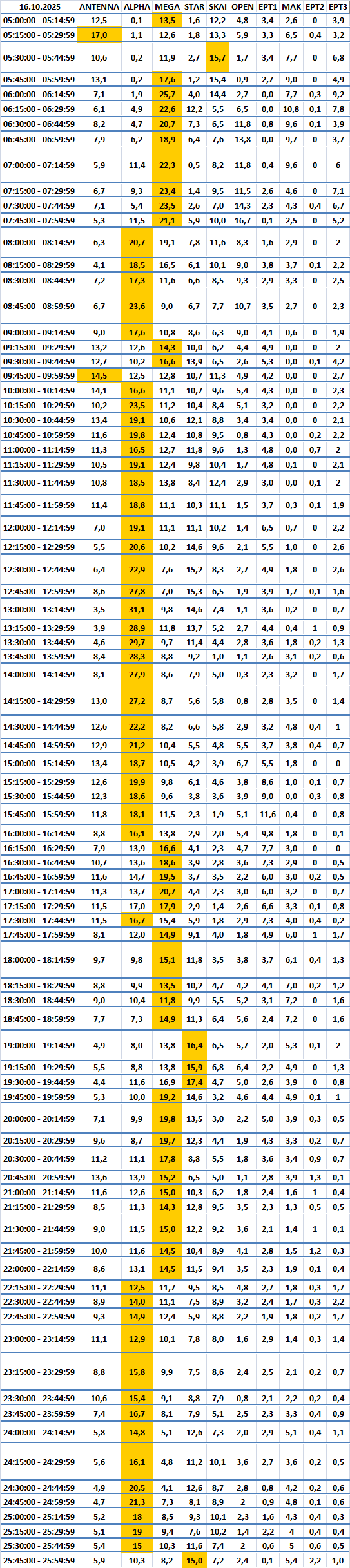 Δείτε αναλυτικά μέσα απο το TVNEA.COM τα 15' στο δυναμικό κοινό αλλα και το σύνολο ημέρα και prime time.