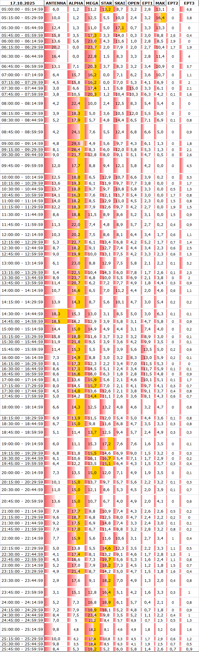 Δείτε αναλυτικά μέσα απο το TVNEA.COM τα 15' στο δυναμικό κοινό αλλα και το σύνολο ημέρα και prime time.