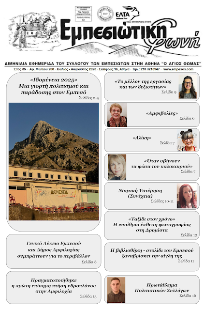 Κυκλοφόρησε το νέο τεύχος της εφημερίδας "Εμπεσιώτικη Φωνή". του Συλλόγου Εμπεσιωτών Αθήνας "Ο Άγιος Θωμάς"