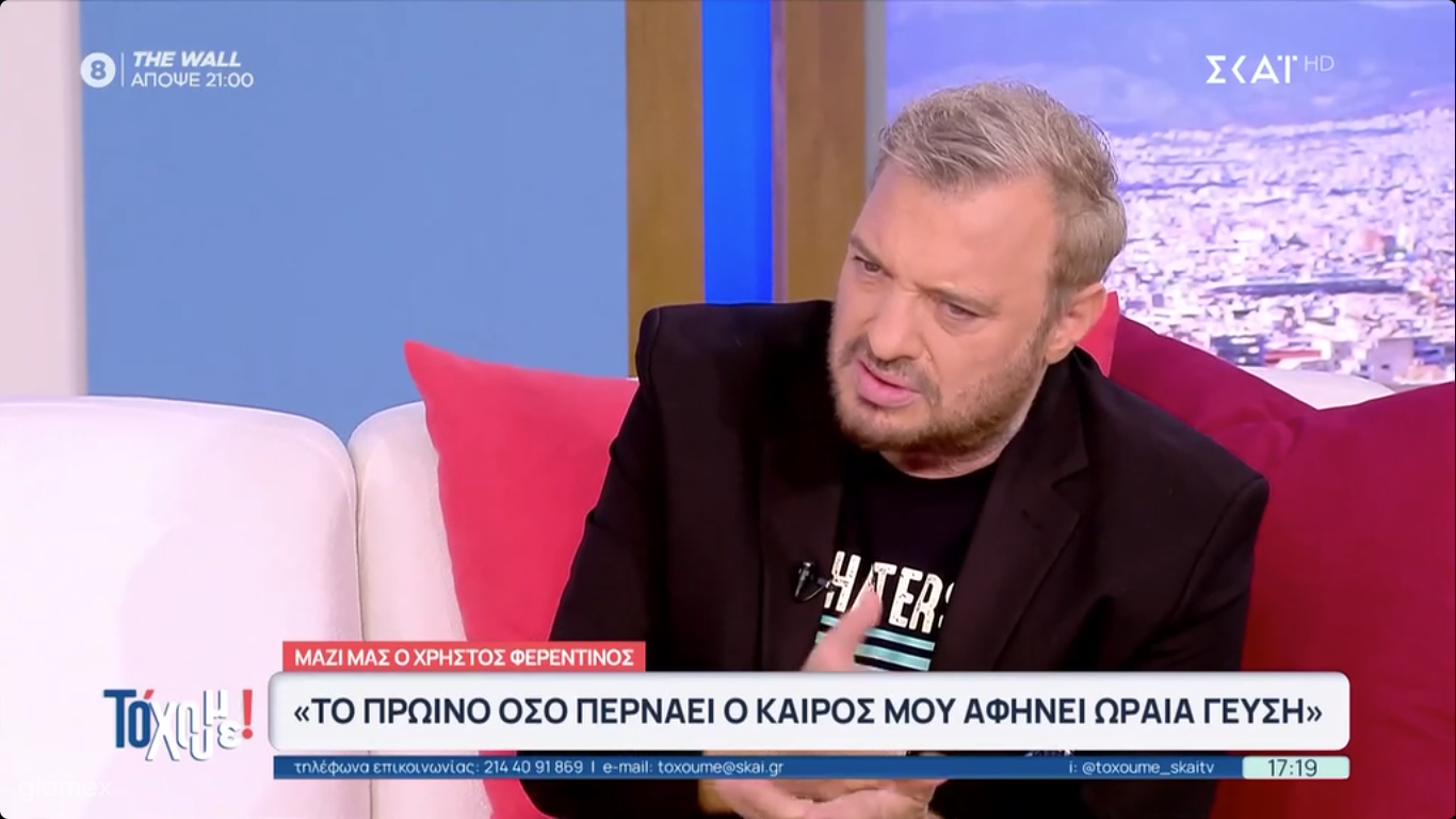 Καλεσμένος του Κώστα Τσουρού στην εκπομπή «Το ’Χουμε» βρέθηκε το απόγευμα της Τρίτης ο Χρήστος Φερεντίνος. Ο δημοφιλής παρουσιαστής μίλησε για την τηλεοπτική του επιστροφή μέσα από το «The Wall» του ΣΚΑΪ, αλλά και για όσα ετοιμάζει στη μικρή οθόνη.