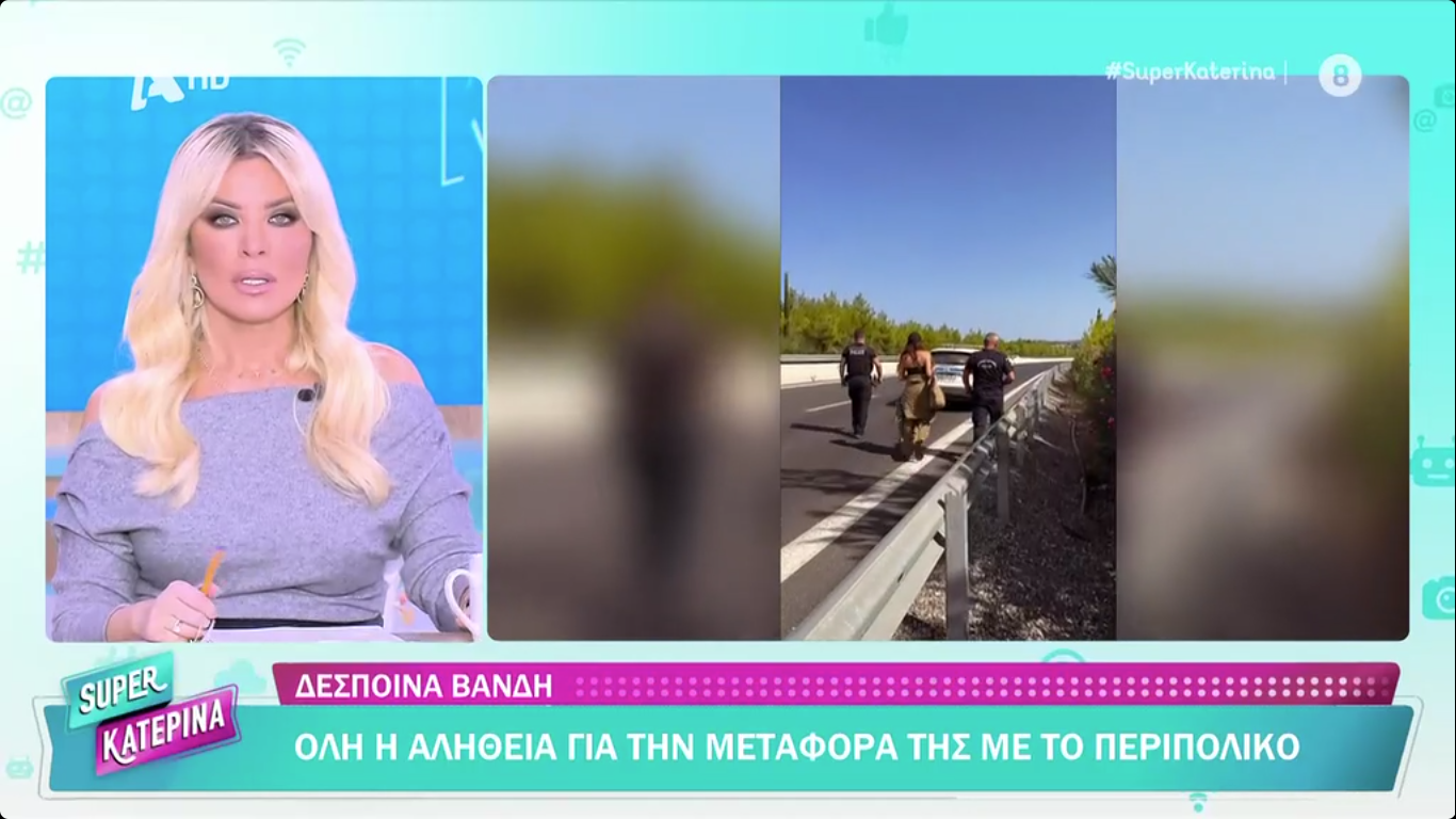 Η Κατερίνα Καινούργιου, μέσα από την εκπομπή Super Κατερίνα, σχολίασε το περιστατικό με τη Δέσποινα Βανδή και το βίντεο που δείχνει την τραγουδίστρια να μεταφέρεται με περιπολικό, έπειτα από βλάβη στο αυτοκίνητο στο οποίο επέβαινε.