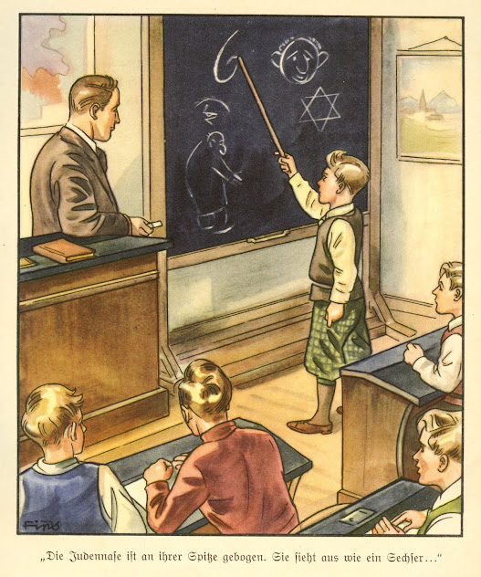 Οι μαθητές διδάσκονταν την ταξινόμηση των διαφόρων φυλών, έκαναν μαθήματα κρανιομετρίας, διδάσκονταν την κληρονομικότητα των φυσικών και διανοητικών χαρακτηριστικών και μελετούσαν με τη βοήθεια διαφανειών και μικρών ταινιών τις διαφορές ανάμεσα στα αμιγή φυλετικώς άτομα και σε εκείνα που λόγω φυλετικών επιμειξιών ήταν κατώτερα και από κληρονομική άποψη μειονεκτικά. Το 1938 ο Alfred Vogel, ένας από τους συντάκτες του προγράμματος σπουδών για τη βιολογία και διευθυντής δημοτικού σχολείου στη Βάδη, παρήγαγε μια σειρά αντισημιτικών χαρτών, ως εκπαιδευτικό υλικό του νέου προγράμματος σπουδών. Αυτό συνοδευόταν από ένα βιβλίο εκπαιδευτικού για τη διδασκαλία της βιολογίας στο δημοτικό.