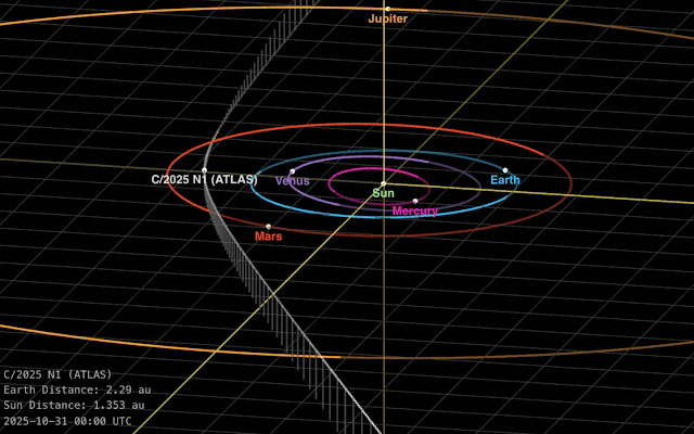 Ο κομήτης 3I/ATLAS, πλησίασε σε απόσταση περίπου 126 εκατομμυρίων μιλίων (203 εκατομμύρια χιλιόμετρα) από τον ήλιο μας, σύμφωνα με το EarthSky