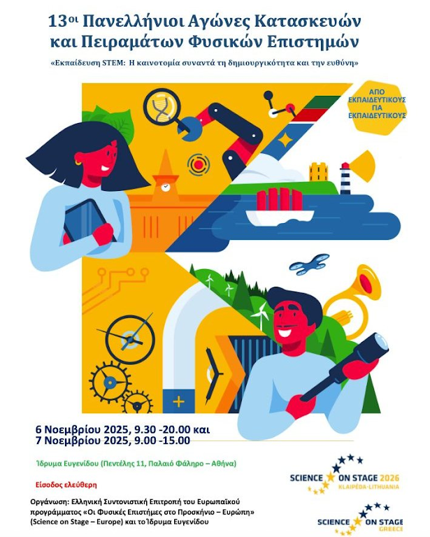 Στις 6 & 7 Νοεμβρίου 2025, το Ίδρυμα Ευγενίδου φιλοξενεί τους 13ους Πανελλήνιους Αγώνες Κατασκευών και Πειραμάτων Φυσικών Επιστημών, με θέμα