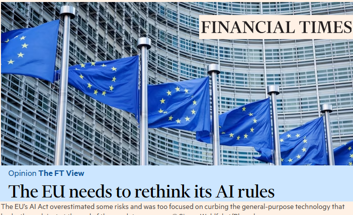 Οι ρυθμίσεις της ΕΕ έχουν συμβάλει στη διασφάλιση της προστασίας των προσωπικών δεδομένων και στον ανταγωνισμό του τεχνολογικού τομέα. Αλλά με την Πράξη του 2024 για την Τεχνητή Νοημοσύνη το παράκανε. Οι κανόνες προκάλεσαν ένα σφοδρό lobbying από τις εταιρείες Big Tech και την αμερικανική κυβέρνηση. Το σημαντικότερο, έθεσαν σε κίνδυνο την ανταγωνιστικότητα ευρωπαϊκών εταιρειών και start-ups, και κινδυνεύουν να καταστήσουν την Ευρώπη έναν μόνιμο χαμένο στον αγώνα με τις ΗΠΑ και την Κίνα για την ανάπτυξη και αξιοποίηση της μετασχηματιστικής τεχνολογίας.