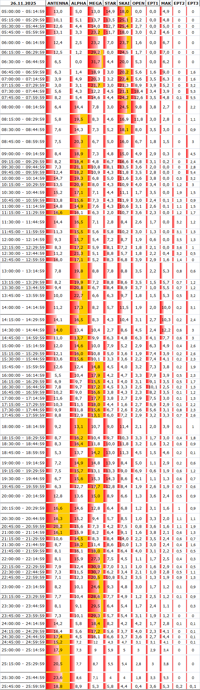 Δείτε αναλυτικά μέσα απο το TVNEA.COM τα 15' στο δυναμικό κοινό αλλα και το σύνολο ημέρα και prime time.