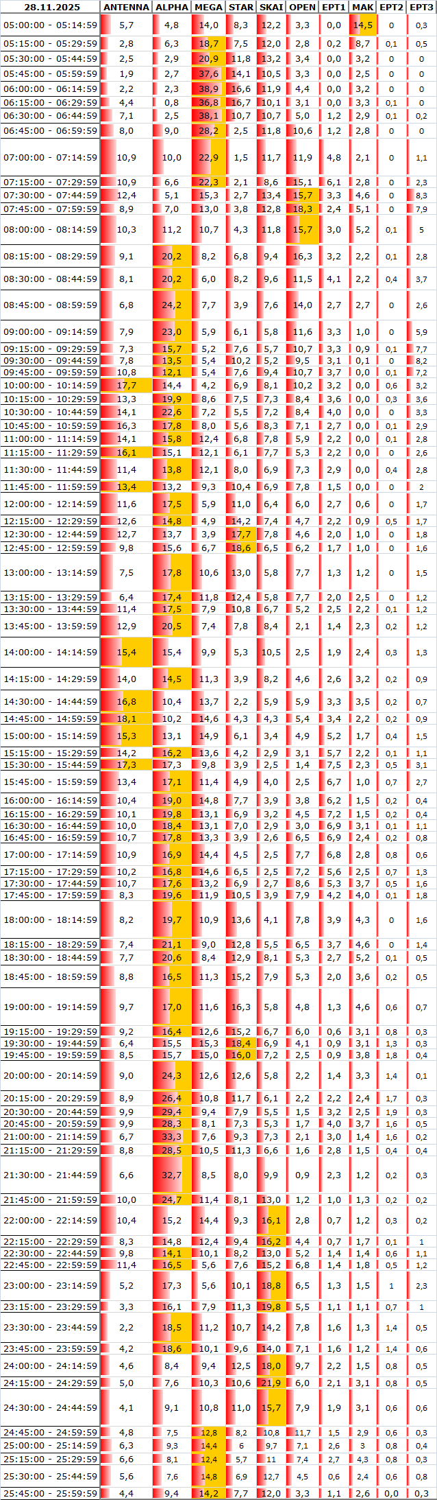 Δείτε αναλυτικά μέσα απο το TVNEA.COM τα 15' στο δυναμικό κοινό αλλα και το σύνολο ημέρα και prime time.