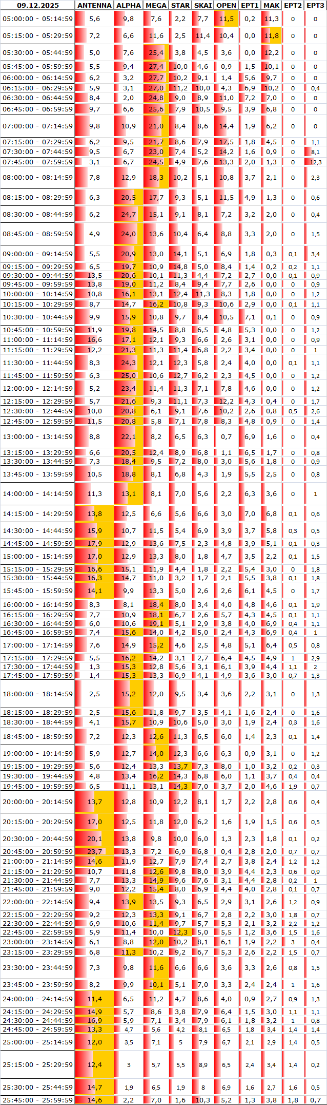 Δείτε αναλυτικά μέσα απο το TVNEA.COM τα 15' στο δυναμικό κοινό αλλα και το σύνολο ημέρα και prime time.