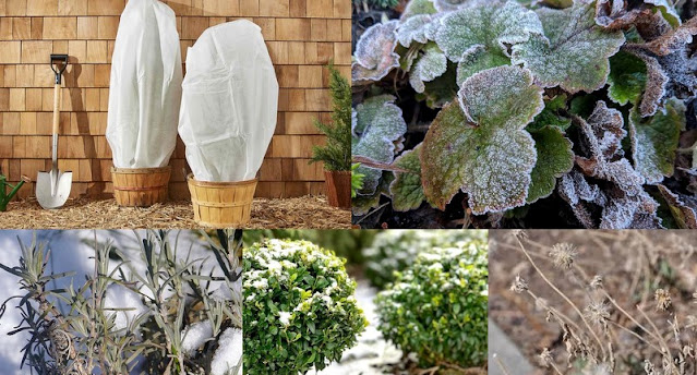 Χρησιμοποιήστε υφάσματα προστασίας, τοποθετήστε τις γλάστρες σε πιο προφυλαγμένα σημεία ή μετακινήστε σε προστατευμένο/εσωτερικό χώρο φυτά που δεν αντέχουν τον παγετό.