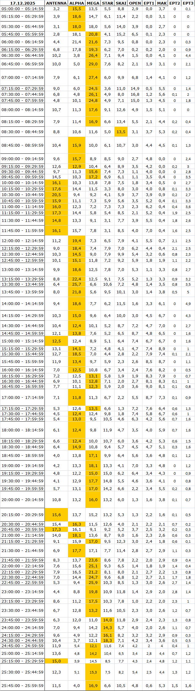 Δείτε αναλυτικά μέσα απο το TVNEA.COM τα 15' στο δυναμικό κοινό αλλα και το σύνολο ημέρα και prime time.
