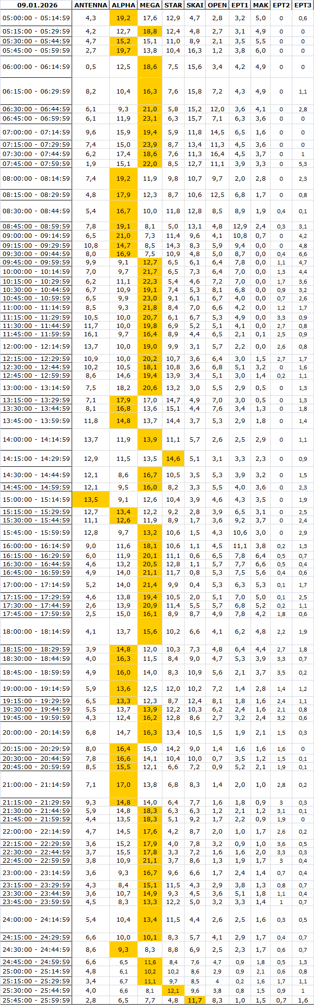 Δείτε αναλυτικά μέσα απο το TVNEA.COM τα 15' στο δυναμικό κοινό αλλα και το σύνολο ημέρα και prime time.
