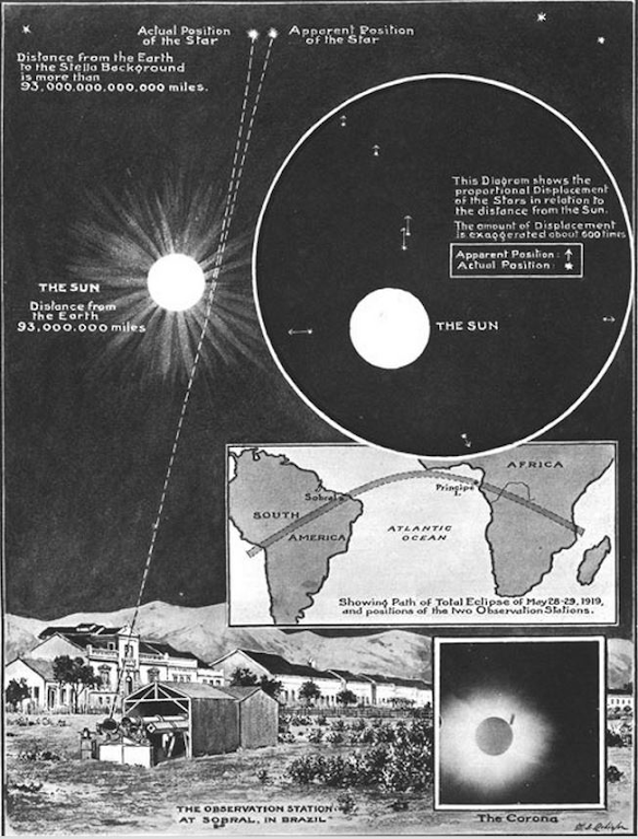 Πρόκειται για έναν εντυπωσιακό προάγγελο του μεταγενέστερου ταξιδιού του Eddington στο νησί Principe της Δυτικής Αφρικής, με σκοπό τη μέτρηση της κάμψης του φωτός των αστέρων κατά τη διάρκεια της ηλιακής έκλειψης του 1919. Είναι μόνο μία από τις πολλές ιστορίες στην αξιοθαύμαστη προϊστορία της γενικής σχετικότητας!