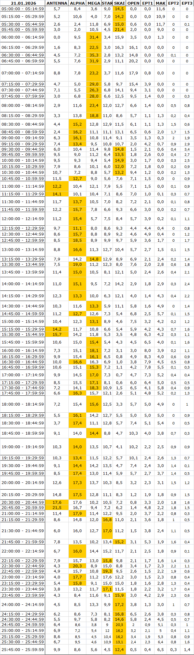 Δείτε αναλυτικά μέσα απο το TVNEA.COM τα 15' στο δυναμικό κοινό αλλα και το σύνολο ημέρα και prime time.