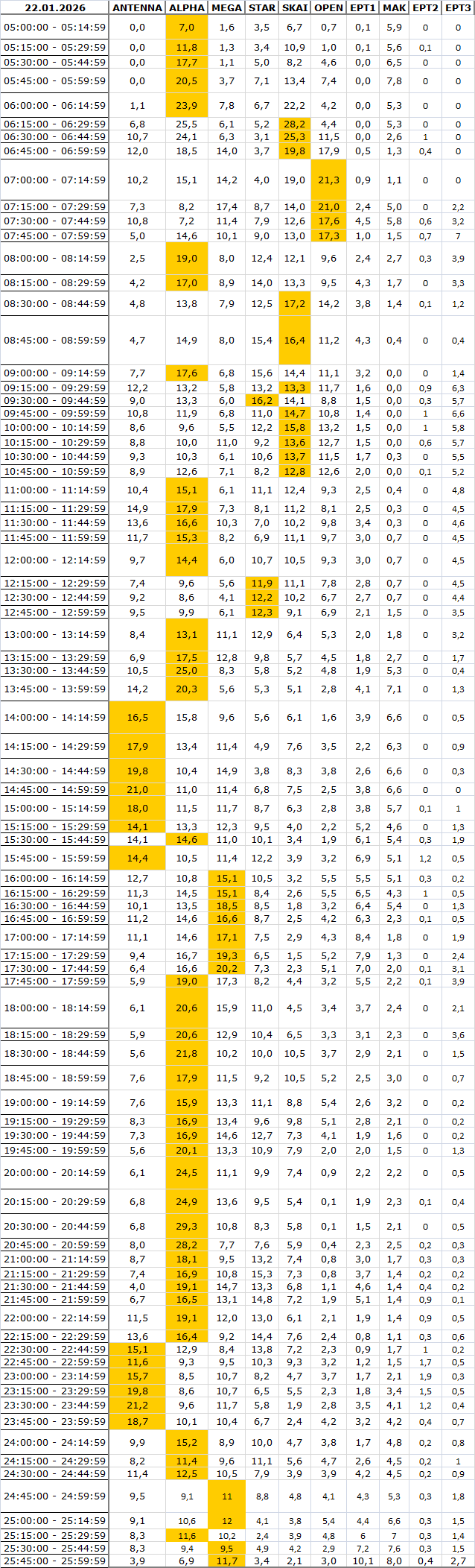 Δείτε αναλυτικά μέσα απο το TVNEA.COM τα 15' στο δυναμικό κοινό αλλα και το σύνολο ημέρα και prime time.