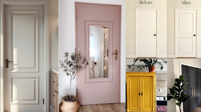 Σε εντελώς απλού σχεδιασμού εσωτερικές πόρτες όπως και πόρτες σε ντουλάπες, εντοιχισμένες ή μη, μπορείτε να δώσετε εντελώς νέα εμφάνιση όχι μόνο με βάψιμο, αλλά και με τη δημιουργία σχεδίων στην επιφάνειά τους, που θα τις κάνουν να μοιάζουν με έτοιμες ταμπλαδωτές πόρτες.