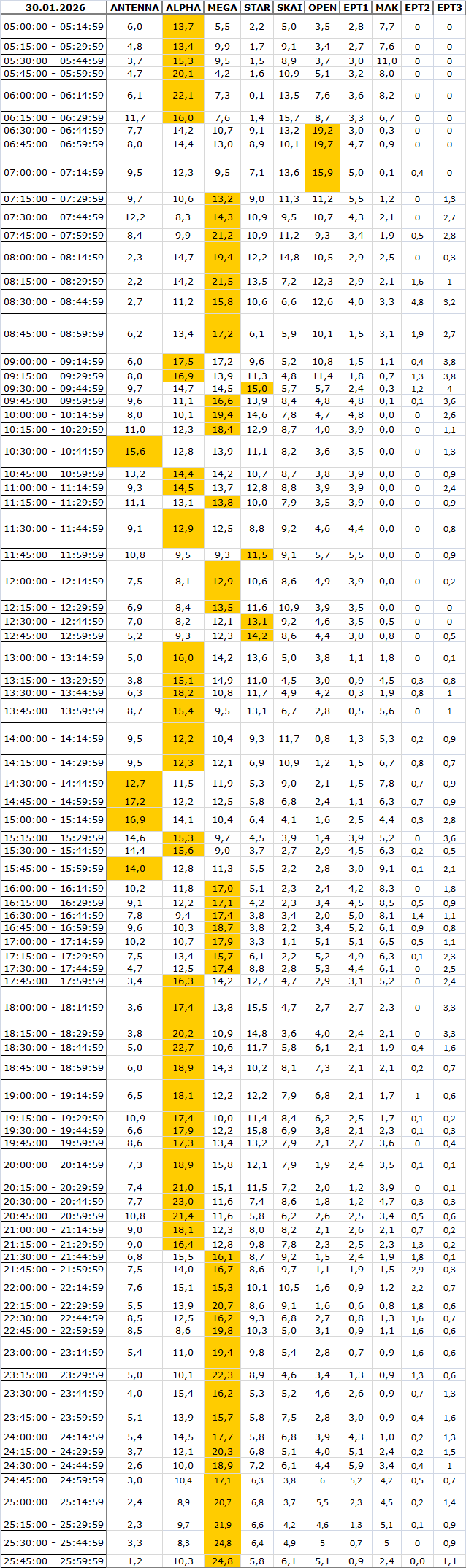 Δείτε αναλυτικά μέσα απο το TVNEA.COM τα 15' στο δυναμικό κοινό αλλα και το σύνολο ημέρα και prime time.