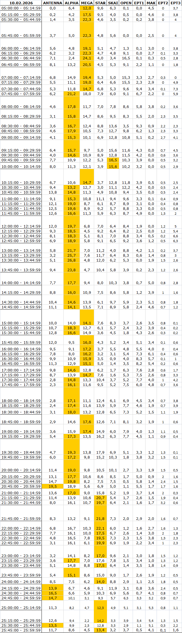 Δείτε αναλυτικά μέσα απο το TVNEA.COM τα 15' στο δυναμικό κοινό αλλα και το σύνολο ημέρα και prime time.