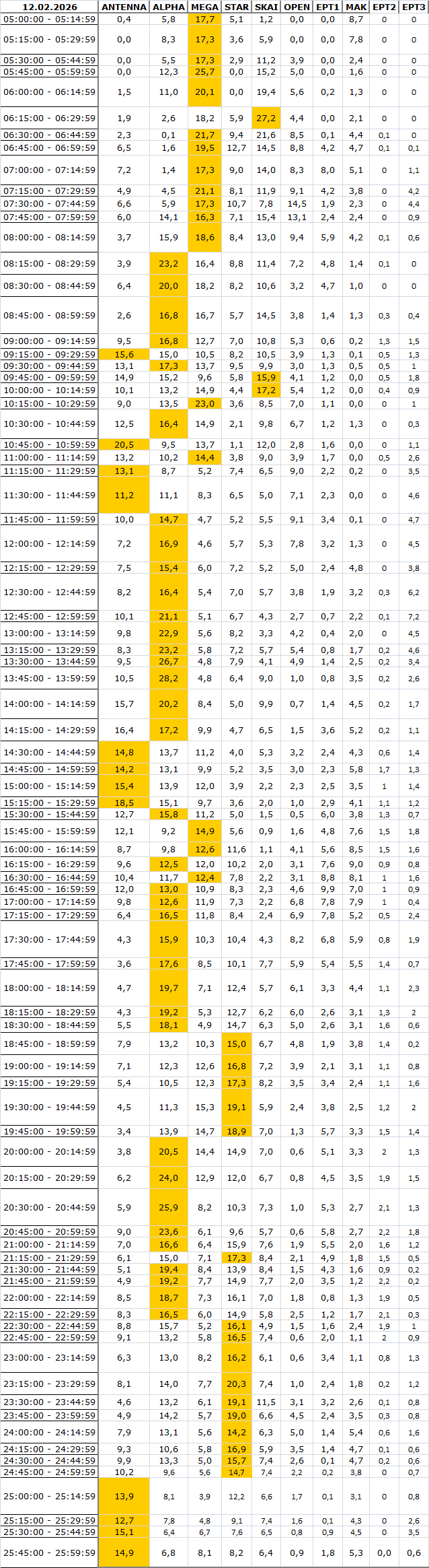Δείτε αναλυτικά μέσα απο το TVNEA.COM τα 15' στο δυναμικό κοινό αλλα και το σύνολο ημέρα και prime time.