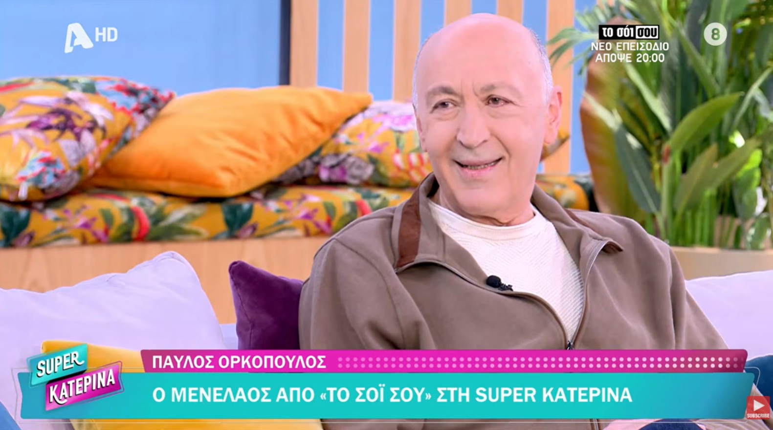 Ο Παύλος Ορκόπουλος, ο ήσυχος Μενέλαος Τριανταφύλλου από τη σειρά «Το σόι σου», ήταν σήμερα καλεσμένος στην εκπομπή Super Κατερίνα με την Κατερίνα Καινούργιου και μίλησε για το ρόλο του στην επιτυχημένη σειρά.