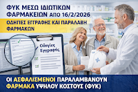 Από Δευτέρα 16/2/2026 ξεκινά η διακίνηση Φαρμάκων Υψηλού Κόστους (ΦΥΚ) και μέσω ιδιωτικών φαρμακείων.
