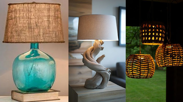 Η επαναχρησιμοποίηση μπουκαλιών, γυάλινων βάζων ή παλαιών φαναριών είναι μια ιδιαίτερα οικονομική επιλογή με εξίσου ιδιαίτερο αισθητικό ενδιαφέρον. Το γυαλί διαχέει το φως καθαρά, ενώ σε συνδυασμό με ξύλινη ή μεταλλική βάση δημιουργεί πολύ ιδιαίτερο και ισορροπημένο αποτέλεσμα. Η επιλογή λαμπτήρα θερμής απόχρωσης ενισχύει τη φυσική αίσθηση της κατασκευής.