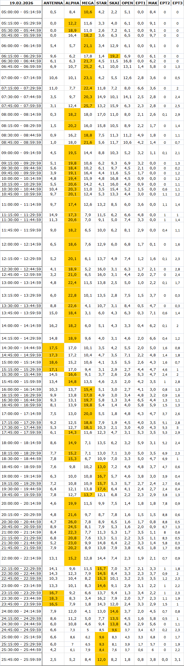 Δείτε αναλυτικά μέσα απο το TVNEA.COM τα 15' στο δυναμικό κοινό αλλα και το σύνολο ημέρα και prime time.