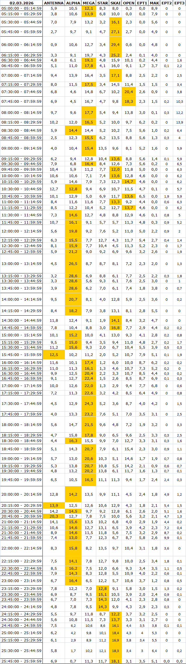 Δείτε αναλυτικά μέσα απο το TVNEA.COM τα 15' στο δυναμικό κοινό αλλα και το σύνολο ημέρα και prime time.