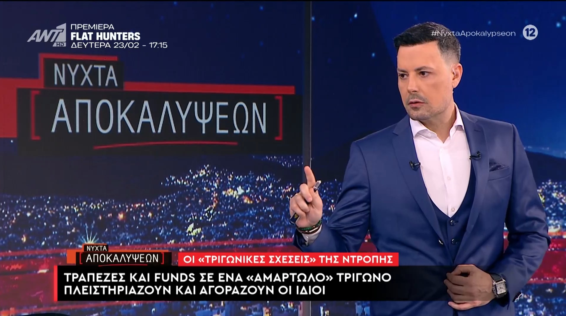 Με πρωτιά έκλεισε και ο Φεβρουάριος για την εβδομαδιαία νυχτερινή εκπομπή του Πέτρου Κουσουλού, «Νύχτα αποκαλύψεων», αποδεικνύοντας ότι οι τηλεθεατές αναζητούν και στηρίζουν την αποκαλυπτική και τεκμηριωμένη δημοσιογραφία.