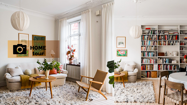 Το λευκό για όλες τις μεγάλες επιφάνειες έχει συνδυαστεί με τη φυσική απόχρωση του ξύλου και έντονα χρωματικά στοιχεία σε λεπτομέρειες, αρκετά για να δημιουργούν τις αναγκαίες αντιθέσεις και να προσθέτουν ζωντάνια και ενδιαφέρον. Επίσης λόγω του λευκού, της απουσίας κλειστών επίπλων μεγάλου όγκου, του ενιαίου ξύλινου δαπέδου και του ύψους του κλασικού διαμερίσματος, ο χώρος δείχνει σημαντικά μεγαλύτερος των 73τμ που καταλαμβάνει. Φυτά εσωτερικού χώρου, λεπτομέρειες σε πιο σύγχρονο ύφος, υφασμάτινα στοιχεία με ζεστές υφές και διακριτική διακόσμηση των τοίχων συμπληρώνουν την εικόνα, σε ένα σπίτι που συνδυάζει ιδανικά λειτουργικότητα και αισθητική.